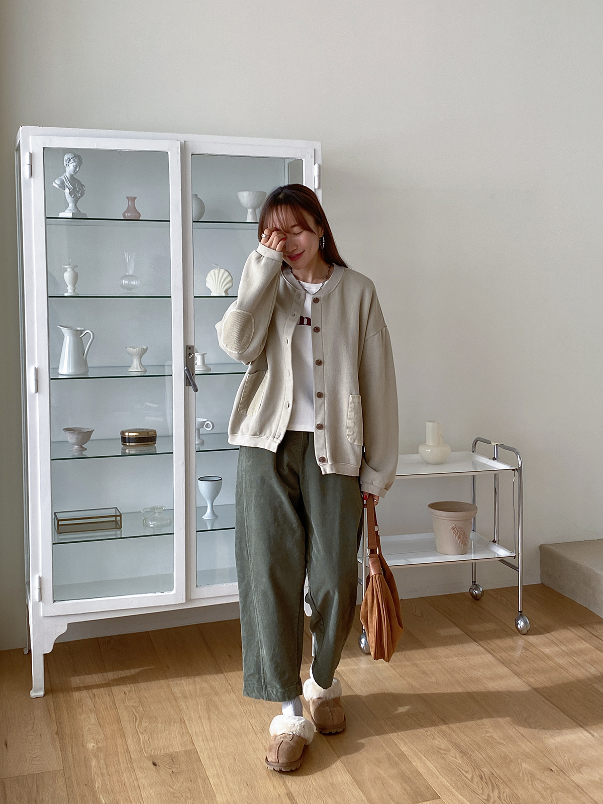 절개 포인트가 들어간 코듀로이 소재로 귀엽고 스타일리쉬한 무드 연출이 가능한 골덴 와이드 팬츠